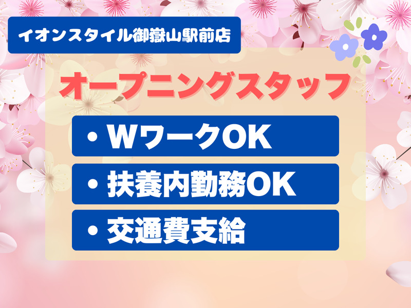 選考プロセス <面接地> 2026年4月よりイオンスタイル御嶽山駅)での勤務ですが、 それまでの期間は下記どちらかの店舗での研修を実施いたします。 ①イオンスタイル碑文谷内 東京都目黒区碑文谷4-1-1 東急東横線「学芸大学駅」より徒歩10分。「都立大学駅」より徒歩13分 ②イオンスタイル品川シーサイド店内 東京都品川区東品川4丁目12-5 りんかい線「品川シーサイド駅」より徒歩4分、京浜急行電鉄「青物横丁駅」より徒歩8分 <応募方法> 「応募する」ボタンより、必要事項を入力の上、送信して下さい。お電話でのご応募も大歓迎です。 <応募後のプロセス> 面接日程等はこちらからお電話または、メールにてご連絡いたします。 面接には履歴書(写貼)持参下さい。 【面接地・登録地】 イオンスタイル碑文谷 所在地:東京都目黒区碑文谷4丁目1-1 担当者:藤谷 電話番号:09042406815 イオンスタイル品川シーサイド 所在地:東京都品川区東品川4丁目12-5 担当者:藤谷 電話番号:09042406815