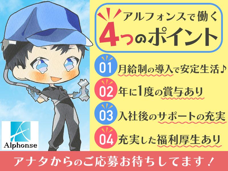 【保険制度】 雇用保険、労災保険、健康保険、厚生年金 待遇・福利厚生: * 社会保険完備(雇用・労災・健康・厚生年金) * 有給休暇制度 * 制服無料貸与(作業服通勤OK) * 車通勤OK(無料駐車場あり) * 健康診断 * 分煙対策あり(屋外喫煙所あり) * キャリアアップ研修制度あり * 資格取得支援制度あり * 髪色自由 * 更衣室・ロッカー・休憩室完備 * 自動車での休憩OK/職場見学OK