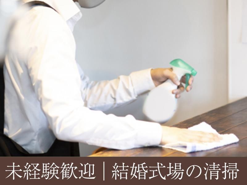 仕事内容 <結婚式場の日常清掃スタッフ> 素敵な一日が過ごせるよう、 チャペルや新郎新婦様や ゲストの方々がお待ちいただく お部屋含む館内全般や屋外の清掃、 消耗品の補充等をお任せします。 綺麗好きな方、お掃除がお好きな方、 大歓迎です! <おすすめポイント1> ◆家事や育児と両立して働きやすい! 家事やプライベートと両立しやすい シフト制のお仕事なので、 スケジュール管理をしやすいのが 嬉しいポイント! 『扶養内で働きたい』 『メインのお仕事と両立して働きたい』 そんな希望がココなら叶えられます! <おすすめポイント2> ◆トクベツな経験や資格は いっさい要りません! 経験や資格よりも人柄ややる気を 重視した採用を行っております。 未経験・ブランク明けの方も 安心してご応募ください! 未経験からスタートした先輩も たくさん活躍されています。 憧れのブライダル業界で 一緒に働きましょう! <おすすめポイント3> ◆他業種からの転職も大歓迎! アパレル、接客、コールセンター、 事務、営業、飲食、カフェ、 販売員コンビニ、イベントスタッフ、 ホテル、受付、軽作業、製造、在宅など、 様々な経験のあるスタッフが活躍中! 子育てが落ち着いた方やスキマ時間で 働きたいという主婦(夫)の方も 多数活躍しています! ブライダル関連のお仕事が 初めての方も歓迎です。