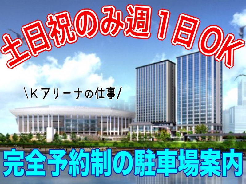 仕事内容 ミュージックテラス敷地内の "Kアリーナ横浜"にて施設駐車場の案内を 行うパート・アルバイトスタッフを募集!! ◆Wワーク・副業にもオススメ! ◆土日祝のみ、週1日勤務ok、時短勤務相談可 ◆未経験ok!大学生やフリーター歓迎 ◆駐車場を事前予約した車のみ対応でゆとり有 ―――――――――――――――――――― <仕事内容> 下記3つのポジションに分かれます。 1、駐車場の出入口で車両誘導 「駐車場を予約していますか」と確認を行い、 歩行者を優先しながら車両を発券機に誘導。 2、発券機にて接客案内 予約番号の確認や会場の行き方などを説明。 3、車両誘導 場内中間地点にて「お車こちらです」と 車両を誘導し駐車先までご案内。 <ここがポイント> ・ライブなどイベント開催時のみ業務発生! なんと台数を制限した状態の 「完全予約制の一般車両」の対応となり ゆとりをもって業務にあたれます。 ・1ポジション1人での業務ですが、 約1時間ごとにポジションを交代し、 こまめな待機時間を挟みます◎ ・随時スタッフ同士で連絡を取り合えるため、 未経験の方もご安心ください♪ ―――――――――――――――――――― ●ネット応募の流れ ・「応募画面へ進む」をクリック ・必須項目を入力 ・応募完了! 応募後は、営業所から電話またはメールにてご連絡をさせていただきます。 ご確認漏れが無いようご注意ください。 ●電話応募はコチラ 080-3706-0956 ― 事業内容 ― パーキング事業【三菱地所グループ】