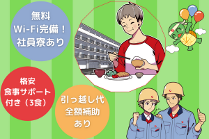 仕事内容 <仕事内容は?> ◇化学工場内の計器類や照明設備の点検、 整備など細かなメンテナンス ◇小規模の電気配線工事 <具体的な作業内容は?> 工場のプラントの備え付けの計器類 (圧力計、温度計、流動計、液面計など))の 点検・整備・調整など道工具や機器を使用し、 メンテナンスを行います。 <どんな人に向いている?> 様々なシチュエーションに応じた、 臨機応変さがもとめられます。 コツコツと仕事に取り組める方を お待ちしております。 <職場環境は?> 残業は少なめの職場なので、 プライベートを充実させたい方にも ぴったりの職場環境です。 職場はいつも明るい雰囲気で、問題が 発生してもみんなで助け合って 解決しています。 <気になることアレコレ> ■入社後の流れは? ⇒配属先の先輩が、仕事の基本からじっくり レクチャー。挨拶の仕方、1日の流れ、 部品の名前、機械の使い方、休憩所での 楽しい過ごし方など、あなたが安心して 馴染めるよう、丁寧にお教えしていきます。 ■その後のフォロー体制は? ⇒現場担当者が、あなたの状況や希望を聞き ながら、ストレスなく働けるように色々 フォローやアドバイスをしていきますので、 ご安心を。 ■収入面が気になります。 ⇒賞与年2回や各種手当があり、格安寮もある ので、自由に使えるお金が増えます。 <今だけ!入社お祝金10万円支給> 事業拡大につき会社を盛り上げてくれる 仲間を増やすため、今回初めて入社お祝金を 支給することに決定しました。 ぜひ、こちらを転職のため支度金として 活用ください。 ※採用人数 (60名限定) に達した段階で 終了します。 ※詳細は面接時にお伝えいたします。 <採用担当者より> ハローワークで正社員のお仕事をお探しの方、 製造や工業内作業を希望されている方、 ぜひご応募ください。 こちらの求人をご覧いただいている 「あなた」と お会いできることを楽しみに しております。 [醍醐味] 安定した製品配給に欠かせない日常の メンテナンスを担う、とても大切な お仕事でやりがい十分!