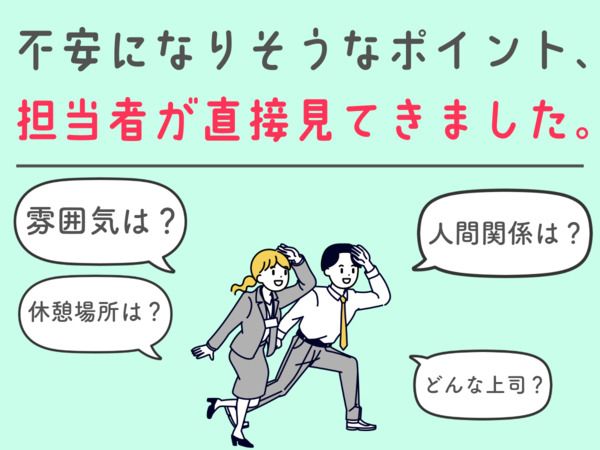 職場環境 屋内喫煙所あり 【職場環境】 ・最寄駅より徒歩20分 ・会社駐車場無し/車通勤以外の手段をご検討ください ・男性/女性活躍中 ・20代、30代、40代、50代、60代前半活躍中 ・フォークリフト実務経験を活かして活躍中 ・食事個人準備 ・屋内原則禁煙(屋外喫煙室あり) 【スケジュール目安/土日祝除く(見込み)】 (1)ご面談(応募後/0~2営業日) (2)現地職場見学(ご面談後/2~5営業日) (3)入社(毎週随時)