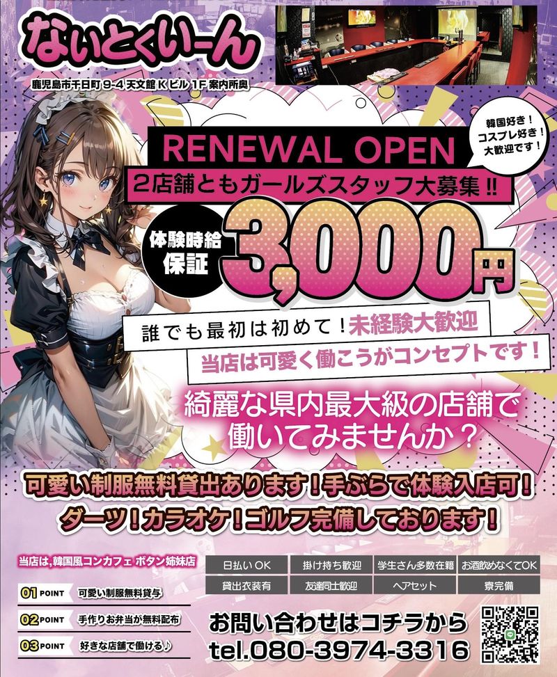 仕事内容 今話題沸騰中の韓国系コンカフェ「Botan」の 姉妹店(2号店)での募集です(^^)/♪ かわいくたのしく働いてみませんか? 自由度が高く、稼げるお店で人気です★ 短期でも大歓迎♪ ちょっとしたお小遣い稼ぎにも最適(^^)/ 制服は韓国で流行りの制服でかわいいと スタッフから大好評~♪ こんな方におすすめ↓ ■稼ぎたい ■韓国系が好き ■たのしく働きたい ■歌・ダンスが好き ■コスプレ好き さらに・・・入店された場合こんな特典が! ☆嬉しいまかない弁当1食付き。 →系列店の焼肉屋のお弁当 日替わりなので、毎日が楽しみ♪ ☆送り付き ☆無料ヘアセット(スタイリスト付き)