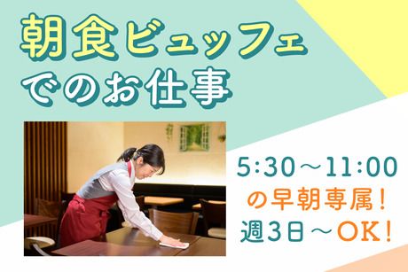\5:30~11:00の早朝のみ/1日5.5時間&週3日~OK!未経験でも明るい対応ができれば歓迎♪