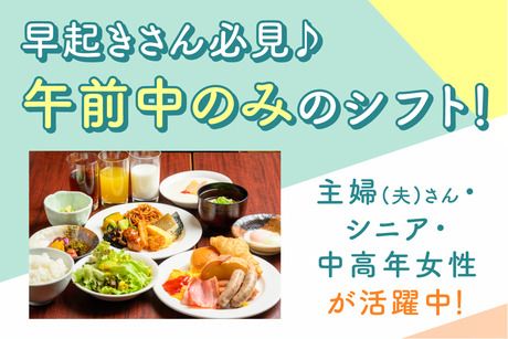仕事内容 ◆朝方派の方にぴったりなお仕事!ホテル業界未経験の方も大歓迎! チサンホテル広島内レストランの 朝食ビュッフェ会場での ホールスタッフ業務をお願いします。 お客様が気持ちよく1日のスタートを切れるよう、 笑顔で対応できればOKです♪ <具体的なお仕事> *お客様のご案内や簡単な接客 *料理の補充や食器の片付け *片付け・洗い場・清掃 *食材の温めや盛り付けなどの簡単な調理補助もあり 仕込みは前日に済ませているので、 当日の調理負担はほとんどありません。 野菜をちぎる・カットするなど、 家庭での料理感覚でできるシンプルな作業が中心です。 難しい調理スキルは必要ないので、 未経験の方も安心して始められます! ◆5:30~11:00の早朝専属シフト!週3日以上の勤務OK! 「朝の時間を有効活用したい」 「午後は自分の予定に使いたい」 そんな方におすすめのお仕事です。 午前中にお仕事が終わるので、 午後はまるまる自由時間♪ ・買い物や家事をゆっくりこなせる ・病院や通院にも行きやすい ・午後から学校や習い事に通える など、プライベートを充実させられる働き方です。 「1日を有効に使えるからとても助かる!」と、 実際に働くスタッフからも好評! 朝のスキマ時間を活かして、 無理なく続けられるのが魅力です◎ ◆家庭と両立したい主婦(夫)さん大歓迎♪ 現在、主婦(夫)さんやシニア世代、 中高年の女性スタッフが多数活躍中! ◎子どもの手が離れたから働きたい ◎家計の足しに少しでも収入がほしい ◎まだまだ元気だから体を動かして働きたい ――そんな理由でスタートした方が多く、 同世代の仲間が多いからこそ、 すぐに馴染める環境があります。 人間関係も良く、落ち着いた雰囲気なので 安心して長く続けられますよ♪ ◆未経験の方でも丁寧にサポートします! ホテル業界や接客業がはじめての方も応援。 お仕事はイチから丁寧にお教えしますし、 最初は簡単な作業からお任せしていきます。 慣れるまでは先輩スタッフが しっかりフォローしますので、 「置いていかれる」なんてことはありません◎ また、分からないことがあっても すぐに相談できる雰囲気があるので 「未経験でも安心」 「初めてでもすぐに馴染めた」 といった声もたくさん寄せられています。 新しい一歩を踏み出す方を、私たちは全力でサポートします! ◆チサンホテル広島について 広島の中心部にあり、観光や出張で訪れる 多くのお客様に親しまれている 「チサンホテル広島」。 朝食ビュッフェでは、 和洋さまざまなメニューを取り揃え、 1日のはじまりを元気にスタートできるようサポートしています。 アットホームな雰囲気のホテルで、 一緒にお客様をお迎えしませんか?