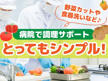 仕事内容 普段のお料理の腕を活かせるお仕事☆飲食店での勤務経験や資格なしで活躍できます◎ミドル・シニアも応援! 病院の厨房で調理補助募集! 【具体的には】 *調理補助業務 *仕込み *食器洗浄 *清掃 など <YM_C3>