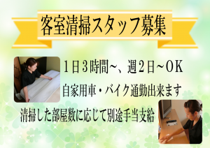 ホテル客室清掃 時給+別途手当支給