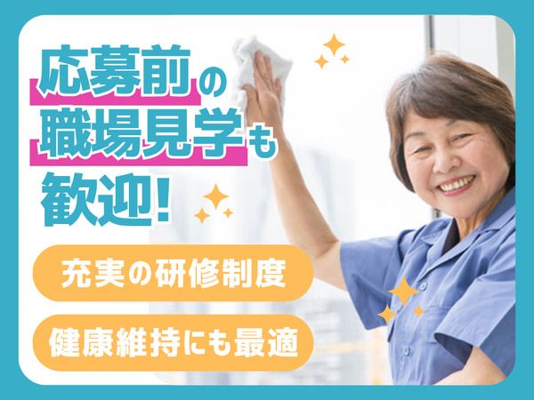 仕事内容 <具体的なお仕事> 施設内の食堂、廊下、トイレ、ゴミの回収 など ◆機械を使っての清掃はありません。 ◆研修期間もあり、担当者もサポートするので安心です。 ・適度に体を動かすお仕事がしたい ・ブランクがあるから心配→ご安心下さい。 \お電話でのご応募も大歓迎!/ 連絡先:076-434-1881(酒井)までお気軽にお問い合わせください。 //////////// ここがポイント!! ////////////// ・平日のみ清掃のお仕事! 女性スタッフがメインで活躍中! ・専門知識や経験不問! 清掃のお仕事の未経験者も大歓迎★ ほとんどのスタッフが未経験スタートです。 ・シフトは1カ月ごと 毎月10日までに提出で15日にシフトが決定(当月21日~翌月20日)します。 //////////////////////////////////////////////// \見学のみも歓迎♪/ 「興味はあるけど自分にはできるか不安・・・。」 「まずは詳しい話だけきいて、応募するか決めたい!」 「転職に迷っている・・。在職中だけど話だけ聞いてみたい!」 ★そんな方はまずは見学だけ・お話だけでもききにきてくださいね!★ ・カジュアルな服装で大丈夫です! ・希望される方はそのまま面接もOK ・お子様連れ、ご家族ご友人との参加もOK ご興味がある方は、お気軽にお電話でご連絡ください♪ ■連絡先:076-434-1881(酒井) <仕事をする環境> シニア、ミドルシニア、中高年、主婦(夫)パート活躍中♪ 主に30代、40代、50代、60代の女性スタッフが中心に活躍しています。 残業がないため、プライベートやご家庭の予定を立てやすい職場ですよ。 また、急な休みにも対応できますので、お子様のいる主婦パート、シングルマザーも活躍中! お子様や介護などの家庭の都合による休みも事前にに相談ください。 ★職場見学も可能なため職場の雰囲気を感じとっていただけます。 \その他、こんな方にもおすすめ♪/ ・扶養内勤務の仕事をお探しの方 ・Wワーク、副業をお探しの方 ・ハローワークで仕事をお探しの方 ・平日のみ勤務の仕事をお探しの方 ・掃除、清掃の仕事に挑戦してみたい方 ・土日休みが希望の方 /////////////////////////////////////// まずはお気軽にお電話ください。 076-434-1881(担当/酒井) //////////////////////////////////////