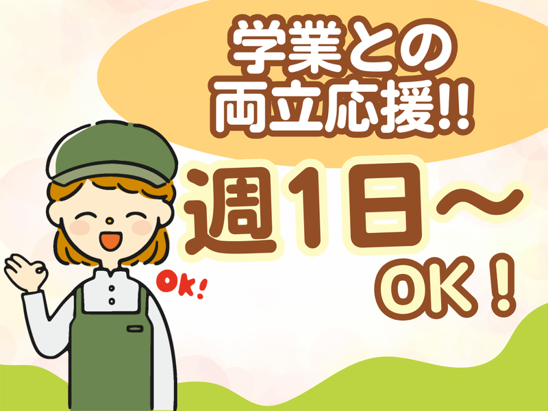 勤務時間詳細 16:00~22:00 ✨週1日~・1日2h~OK ✨土日勤務できる方歓迎 ✨短時間勤務・扶養内勤務OK ✨Wワーク・かけもちOK! ✨高校生は22:00まで 週1日~OKなので 「学業と両立」や「Wワーク」など ちょっとした時間を有効活用できます♪ テスト期間や実習でのお休み相談OK!