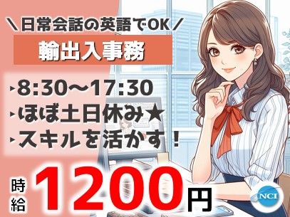 資格経験必要ナシ★8時半~17時半/土日祝休み♪日常会話程度の英語力でOK!