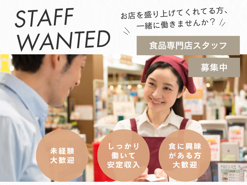 求めている人材 【歓迎条件】 ・9時から20時30分の間で4~8時間の勤務が可能な方 ・20時30分までの勤務が可能な方 ・土日祝日の勤務が可能な方(交代で休みの取得が可能です) 【求める人物像】 ・食に興味のある方
