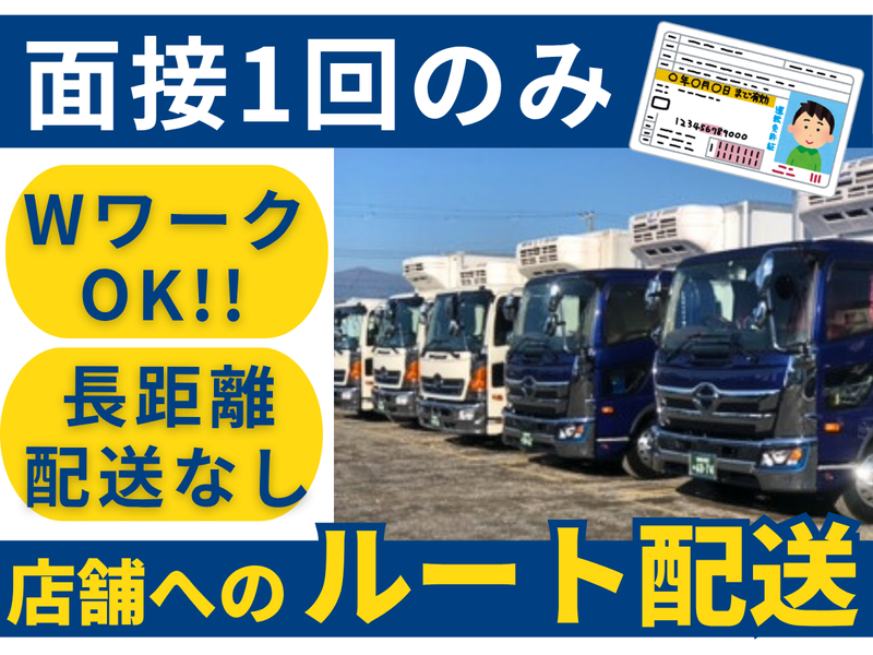 仕事内容 ⛅週1日~OKでWワークにもピッタリ✨ ⛅未経験者歓迎!同乗研修あり◎ ⛅長距離配送なしで無理なく◎ ⛅車通勤・バイク通勤OKで通勤楽々 ―――――――――――――――――― 【食品のルート配送業務】 3t・4tトラック(ゲート車)での 食品のルート間配送をお任せ◎ ⏩配送エリア 神奈川県内を中心とした一都三県 未経験の方も同乗研修があるので 安心してスタートできます! もちろん、配送や輸送などの経験が ある方は経験を活かして働けます。 「コツコツもくもくと働きたい」 「自分のペースで業務を行いたい」 そんな方にもピッタリの環境です✨ ――――――――――――――――― 大手食品メーカーの主体事業として 昭和46年に設立された当社。 設立以来50年以上にわたり 「商品を大切に守り、お届けする気持ち」 をモットーに歩んでまいりました。 今後も「物流」を通じて社会貢献すべく 今回ドライバーを増員募集いたします! ――――――――――――――――― ここまでお読みいただき、 ありがとうございます! ご応募はもちろん、 お問い合わせもお待ちしております◎ ➿0120-22-5514(採用担当)