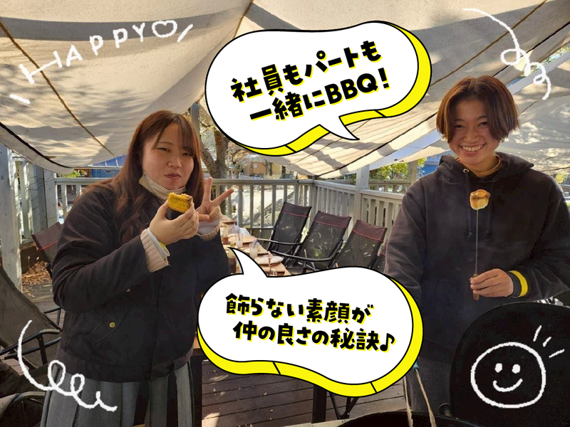 職場環境 20代~70代の男女活躍中! 喫煙所:喫煙所あり(屋外) 休憩時間に庭でモクモクtimeあり