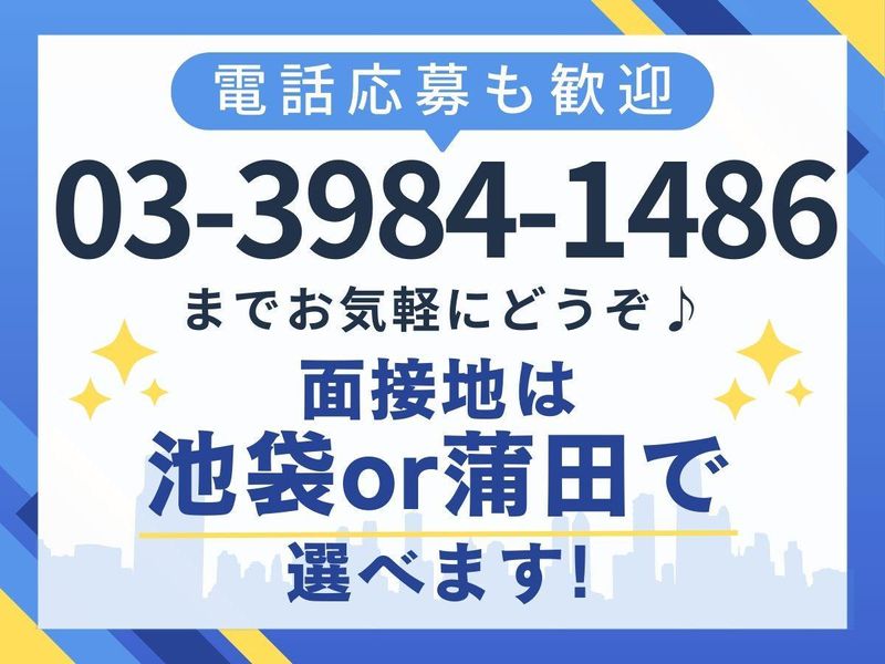 職場環境 現場は日本橋・要町・巣鴨・銀座・ 新宿・中野・渋谷・練馬など多数 (応相談) 長期で固定現場に入ることも 出来ますし、色んな現場に 入りたい方の希望にも応えられます。 お住まいの近く等勤務地の ご相談も可能♪案件豊富なため、 積極採用を行っています!