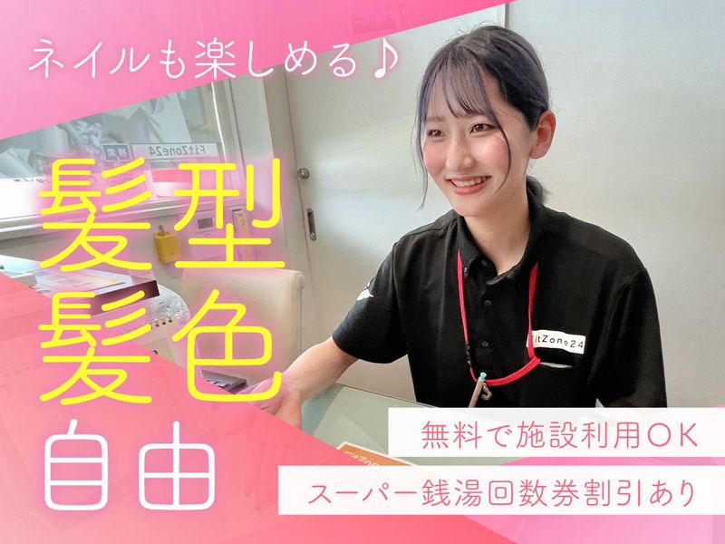 仕事内容 【トレーニングに興味がある方は是非】 【運動に関する知識・資格は不要です】 【接客スキルを活かしたい方も大歓迎】 【研修充実で不安なくスタートできる】 【主婦・Wワークのフリータ―活躍中】 働きながら自分自身も健康に! 地域最大級の本格スポーツジム 「FitZone24」で働きませんか?! ▼お任せするのは… □:お客様対応(入会手続き) □:簡単な施設の利用案内 □:トレーニング器具の操作説明 etc. 専門的な資格は不要◎ マニュアルも充実しており 働いているうちに自然と覚えて いけるので安心して下さいね! ****************** ★髪型・髪色・ネイル自由★ 自分らしくおしゃれも楽しめます! 金髪でも緑色などの派手髪も◎ ネイルは長さに規定はありますが デザインは自由に楽しめます! ★無理のないシフトが魅力★ 勤務は11時~20時内でシフト制◎ 週3日~・1日5hから始められて 残業は一切ないので定時退社OK! ★女性スタッフも多数在籍★ 実際に家事や育児と両立しながら 働いている主婦・ママも活躍中! 久しぶりに社会復帰を考えている方や Wワークで収入を増やしたい方にも◎ ****************** <勤務地> 通勤可能なエリアを考慮いたしますが バランスよく交代(シフト制)で 2店舗への出勤をお願いしています◎ 店舗間の距離も近く、 システムも設備もほぼ同じなので 「毎日全然違う仕事内容、、」 なんてことはないので安心です! ▼1週間のシフト例 月曜:日本製鉄前店 火曜:八重原本店 水曜:休み 木曜:八重原本店 金曜:休み 土曜:日本製鉄前店 日曜:休み ▼各店舗所在地 ・南子安店:千葉県君津市南子安5-29-13 ・日本製鉄前店:千葉県君津市坂田673-11 ・木更津港店:千葉県木更津市中央3-8-3 ・八重原本店:千葉県君津市南子安9-2-22