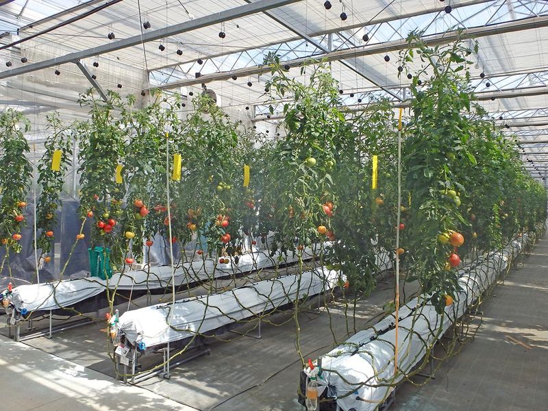 トマト栽培ハウス内の一般事務スタッフ
