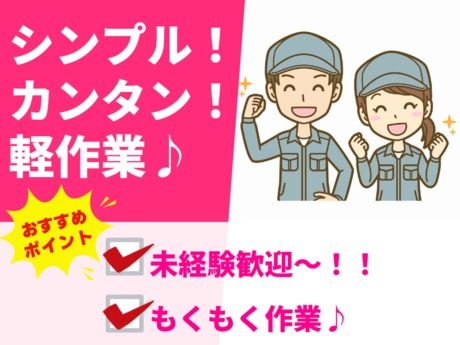 仕事内容 \ここがポイント/ ★時給UPキャンペーン実施中! ★コツコツ作業が好きな方に最適♪ ★大手工場で安心&安定勤務◎ *・。・。*・。・。*・。・。* <仕事内容> \家電部品の組立&チェック作業!/ エアコンや洗濯機などの家電部品を 手順通りに組み立て・検査するお仕事♪ ★部品を機械にセット→製品を取り出し ★電動ドライバーで部品を取り付け ★完成品にキズや不具合がないか確認 どの作業もシンプルで覚えやすく、 未経験スタートの方も多数活躍中! ◎作業環境もきれいで安心 ◎道具の使い方から丁寧に教えます ★ライン作業ではありません! ★黙々と集中して取り組める作業です ★大手企業での勤務だから安定性抜群 ★長く続けたい方にもピッタリ◎ 体を動かすのが好きな方や、 手先を使った作業が得意な方におすすめ♪ 今なら高時給+時給UP中でしっかり稼げます! *・。・。*・。・。*・。・。*