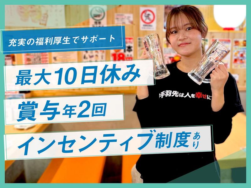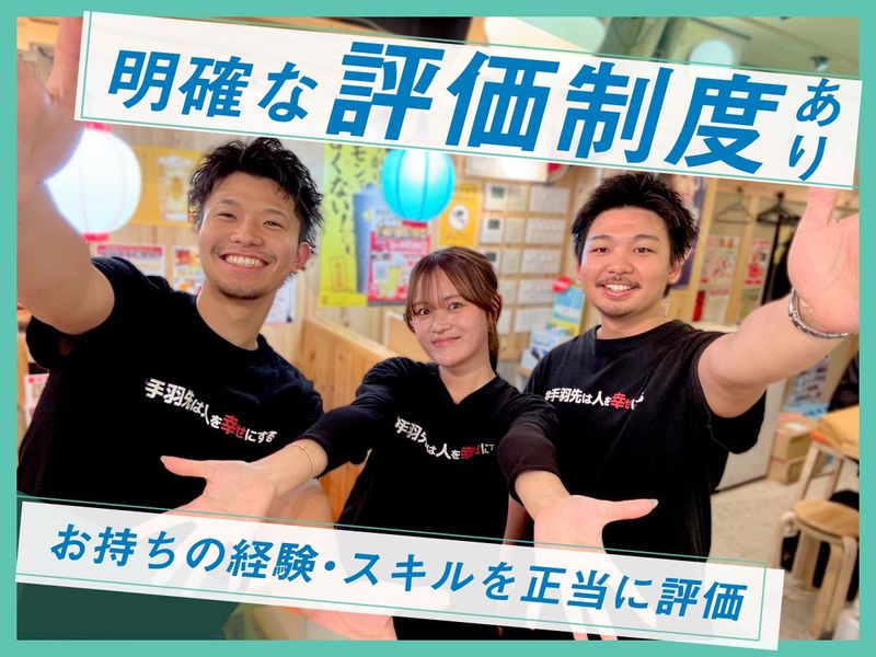 仕事内容 「このまま続けて、5年後どうなってる?」 「ずっとただのスタッフのまま?」 「自分は何ができるんだろう」 飲食店で忙しく働く毎日の中で、 なんとなく不安だけが残る。 そんなあなたへ。 そのまま同じ環境で、 何も変わらず将来が見えないまま 働き続けますか? 年間出店計画30店舗という成長性。 豊富なキャリアパス。 細部まで見る明確な評価制度。 これらが揃っている当社なら 「気づけば何年も同じポジション」 なんて状況にはなりません。 このまま続けるか。 キャリアを動かすか。 選ぶのは、今です。  ̄ ̄ ̄ ̄ ̄ ̄ ̄ ̄ ̄ ̄ ̄ ̄ ̄ ̄ ̄ ̄ ̄ ̄ ̄ ✅店舗拡大をし続ける「成長中」企業 首都圏を中心に、総合居酒屋業態や 専門業態、FC業態の飲食事業など、 18のオリジナルブランド・全国600店舗を 展開している当社。 地域マーケティングに基づく出店戦略で 黒字経営を継続しています。 順調に業績を伸ばし 2026年の出店計画は30店舗! 海外にも新店をオープンするなど 着実に成長し続けている企業です。 ポストが増え続ける環境だからこそ、 「頑張っても上がれない」 ということはありません。 ✅キャリアが“詰まらない”環境 事業も店舗も増え続けているから、 その分ポジションも増えていきます。 また、「社歴」よりも「行動した順」で チャンスがまわる社風のため、 20代で店長になることも 珍しくありません。 実際に、 ■入社3年目/20代 一般社員入社から店長へ ■入社5年目/30代 店長→エリアマネージャーへ といった昇格事例も多数。 さらに ・FCオーナーとして独立 ・本部でマーケティングや商品開発 ・別事業への挑戦 など、ただの“店舗スタッフ”では終わらず その先のキャリアまで選べる環境です。 なんとなく働いて、 なんとなく偉くなるのではなく、 未来の自分のために働いて 目標を達成する。 そんな人材になってほしいと 思っています。 ✅スキルを正当に評価 「上司の好き嫌いで評価が決まる」 「頑張っても給料が変わらない」 当社では、そんなことはありません。 売上・原価などの数字(業績)をはじめ 役割の実行度合いや 改善提案などのプロセスを評価。 ・売上を伸ばした ・新人スタッフを育てた ・対応フローを改善した あなたにとっては“当たり前”でも、 それを“スキル”として評価する。 だからこそ、「何をすれば上がれるか」が 明確で、自然と目標をもって働けます。  ̄ ̄ ̄ ̄ ̄ ̄ ̄ ̄ ̄ ̄ ̄ ̄ ̄ ̄ ̄ ̄ ̄ ̄ ̄ 道があり、自分が今どのレベルで どこに向かっているのかが分かる。 だからこそ「このままでいいのか」と 悩み続けることはありません。 このまま続けるか。 キャリアを動かすか。 選ぶのは、あなたです。  ̄ ̄ ̄ ̄ ̄ ̄ ̄ ̄ ̄ ̄ ̄ ̄ ̄ ̄ ̄ ̄ ̄ ̄ ̄ ■仕事内容 入社後は、店舗スタッフとしてスタート。 前職の経験も考慮しながら 以下の業務をお任せします。 ✅お客様のご案内 ✅オーダー対応 ✅料理・ドリンクの提供 ✅簡単な調理・盛り付け ✅片付け・清掃 など 当店での業務になれた後は 店長候補として店舗運営業務などにも 携わっていただきます。 ■「酔っ手羽」とは? 昭和レトロな懐かしさと、 現代的な活気が絶妙に混ざり合った 独自の空間。 それが「酔っ手羽(よってば)」の 大きな特徴です。 マニュアル通りの無機質な接客ではなく 目の前のお客様を笑顔にするための 「遊び心」を大切にする社風だからこそ、 スタッフ一人ひとりの個性が お店の味になります。 そんな活気ある現場で、 あなた自身の個性を活かしながら、 お客様と一緒に最高にハッピーな空間を 作り上げていきましょう。  ̄ ̄ ̄ ̄ ̄ ̄ ̄ ̄ ̄ ̄ ̄ ̄ ̄ ̄ ̄ ̄ ̄ ̄ ̄ ▼その他当社で習得・実現できること ◇繁盛店の経営・運営ノウハウ ◇オリジナル商品の開発スキル ◇データ分析などのマーケティングスキル ◇飲食コンサルティング能力 ◇店舗プロデュースやオリジナルブランドの 考案および立ち上げ ✅充実の福利厚生でバックアップ ・昇給年3回 ・賞与年2回 ・インセンティブ制度 ・月最大10日休み ・引越手当(1律10万円)※規定あり ・住宅手当(1律2万円支給)※規定あり ・社員旅行(毎年沖縄へ!) ・社内レクリエーション ・独立支援制度 ・ピアス・染髪・ネイル自由 あなたの思い描くキャリアデザインを ぜひ、当社で実現してください。
