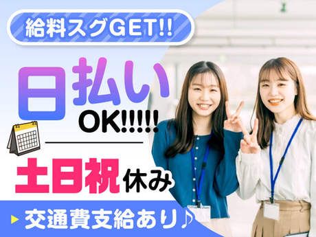 仕事内容 ★☆エムジーで理想のオシゴト見つけよう☆★積極採用中! ゜+.――゜+.――゜+.――゜+.――゜+. 大人気の一般事務! 実務未経験からはじめられる◎ ゜+.――゜+.――゜+.――゜+.――゜+. ☆お仕事内容☆  ̄ ̄ ̄ ̄ ̄ ̄ ̄ ・契約情報(顧客情報・端末・契約プラン等)のデータ入力 ・取引先企業とのメール対応 ・代表電話の取り次ぎ ・来客対応 ・カンタンな社内清掃 など 事務デビューを応援します! 「未経験だけどチャレンジしたい!」 「自分にできるかな…?」そんな不安があっても大丈夫。 丁寧なサポート体制があるから、 事務職がはじめての方も安心してスタートできます♪ あなたの“はじめの一歩”を、私たちがしっかり支えます(^^)/ ◎未経験OK♪  ̄ ̄ ̄ ̄ ̄ ̄ ̄ 事務未経験からオフィスワークを始めたい! そんな方にピッタリのお仕事◎ *。*゚*⌒*゚*。*゚*⌒*゚*。*。*゚* ◎あんしんの研修♪  ̄ ̄ ̄ ̄ ̄ ̄ ̄ ̄ ̄ 研修もあるので未経験の方でも 始めやすい(^^)/ また、弊社の先輩スタッフも在籍中! お困りごともしっかりサポートします♪ *。*゚*⌒*゚*。*゚*⌒*゚*。*。*゚* ◎嬉しい「日・週払い」も♪  ̄ ̄ ̄ ̄ ̄ ̄ ̄ ̄ ̄ ̄ ̄ ̄ ̄ お給料はすぐGET♪ 急な出費もあんしんです! *。*゚*⌒*゚*。*゚*⌒*゚*。*。*゚* ◎スタート日の調整はご相談OK♪  ̄ ̄ ̄ ̄ ̄ ̄ ̄ ̄ ̄ ̄ ̄ ̄ ̄ ̄ ̄ ̄ ̄ 無理なくお仕事を始めていただけるように お日にちはご相談ください! 「スグに始めたい」などのご希望も お気軽にご相談ください◎ *。*゚*⌒*゚*。*゚*⌒*゚*。*。*゚* ◎おしゃれ自由♪  ̄ ̄ ̄ ̄ ̄ ̄ ̄ ̄ おしゃれも楽しめる職場です! ネイルもOK◎自分らしく働ける♪