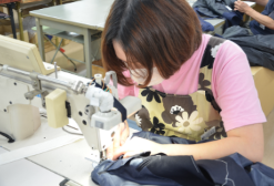 制服をつくる工場でのミシン・アイロン作業
