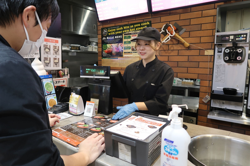 フードコート内のハンバーグ専門店でオープニングランチスタッフ