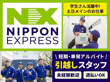 仕事内容 短期の引越アシスタント <3/6~4/5の期間限定> ・日給1万1200円★ ・期間内単発1回OK ・週払いOK(規定あり)★ ・履歴書不要 <応募受付TEL> 03-3450-6385(採用担当まで) <具体的な作業内容> 事務所移転や一般家庭の引越作業 ・荷造り ・搬出 ・搬入 ・荷解き など 1日のスケジュール例 [7:30] 事務所への出勤~朝礼 [7:45] 電車で出発 [8:30] 1件目の現場到着・現地朝礼 [9:00] 1件目作業開始(途中休憩を挟む) [11:00] 作業終了~2件目の現場へ出発 [12:00] 休憩 [13:00] 2件目作業開始(途中休憩を挟む) [17:00] 2件目終了・事務所へ移動(電車) [17:30] 事務所到着・解散 春に大人気♪シーズン限定バイトです どの曜日でも自由に入れるのがポイント◎ 「平日だけ」→OK! 「土日だけ」→OK! 「曜日を選びたい」→OK! 「Wワークしたい」→OK! 「春休みだけ」→期間限定! ★動機はさまざま★ 「休日も稼ぎたい」 「デスクワークが多いから運動不足解消のために」 など、ここで働く理由は何でもOK! 大手で安心 <安定のNXグループ> トラック輸送事業・重量品輸送・ 引越・ 事務所移転作業・JRコンテナ集配および工場内作業等 幅広い事業を手掛けている会社です。 物流を通して「ひと・企業・地域」をつないで 社会の発展に貢献している私達の 一員として活躍してみませんか? 他、こんなお仕事も!興味ある方はご相談ください◎ ■移転業務 企業のオフィス移転やオフィス内の 移動業務が中心です。親切・丁寧な作業で お客様から直接感謝される機会も♪