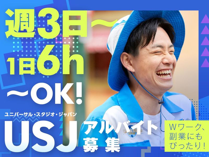 仕事内容 ⭐ー USJ公式アルバイト募集 ー⭐ ワクワクドキドキをお届けする ユニバーサル ・ スタジオ・ジャパンで 「パークをキレイにする清掃サービススタッフ」を大募集! ✅担当するエリアの路面やベンチ、 お手洗いの清掃やゴミ回収など、 パーク内を隅々までキレイに清掃します◎ ゲストとコミュニケーションをとる機会も多く、 写真撮影や施設案内など、パークの魅力を伝えて さらに楽しんでもらえるようお手伝いします♪ ✅週3〜5日、6〜8h勤務 平日メイン、土日メイン Wワーク・副業など働き方の相談可◎ ✅クルー限定の特典やイベント多数♪ 無料招待券や割引チケットの配布 クルー限定パークイベントもあり◎ 他にも、従業員食堂の割引、 勤務時間に応じたマイレージボーナスなど 長く働くほどお得な特典がたくさん!