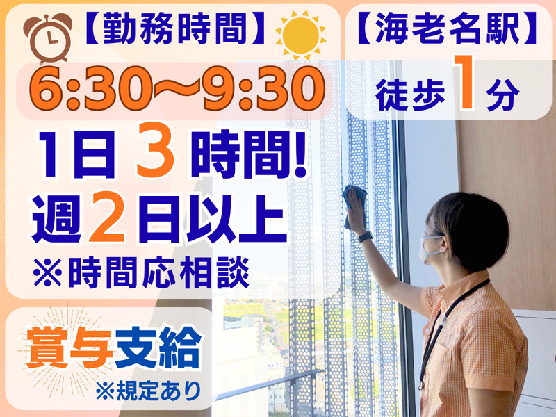 仕事内容 「海老名駅」より徒歩1分 \⭐ビナガーデンズ内!⭐/ お客様や従業員の方が 気持ちよく過ごせるよう、 施設内のお掃除をおまかせ! タオル・掃除機などを使った 簡単作業です♪ 力仕事や難しい機械はありません✨ ★移動はエレベーターなので 体に負担なく働けます! ★空調完備で快適に働けます! ★丁寧な研修がありますので、 未経験の方でも安心◎ - 主婦・主夫さん、フリーターさん などが活躍中です★ ▼▽▼ ご応募はお気軽に ▼▽▼ TEL【046‐259‐8302】まで! ※受付時間 6:30~15:30