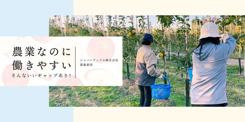 アピールポイント \当社について/ ●面積が減少中のりんご産業のV字回復が目標 ●海外の生産方法を導入し事業拡大中 ●役職を目指しやすいタイミング <海外の生産法「高密植栽培」で効率化> コンパクトに育つりんごの木を密植する生産方法です。 これによって早期多収や均質生産、作業効率の向上を叶えています。 ⇒品種はふじりんご6割、シナノゴールド4割 青森県のりんご産業の課題を解決するため、 【株式会社日本農業】と 【株式会社ファーマインド】の2社が 2020年に協力して立ち上げた スタートアップのベンチャー企業です。 「日本の農業に危機感がある」 「一次産業をより良くしたい」 そんなアツい想いがある方のチャレンジを、 スタッフ一同お待ちしています!