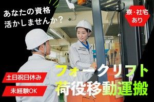 日勤×寮ありのお仕事です!土曜は隔週でお休み♪フォークリフト資格所有者、荷役作業経験ある方が多数活躍中♪