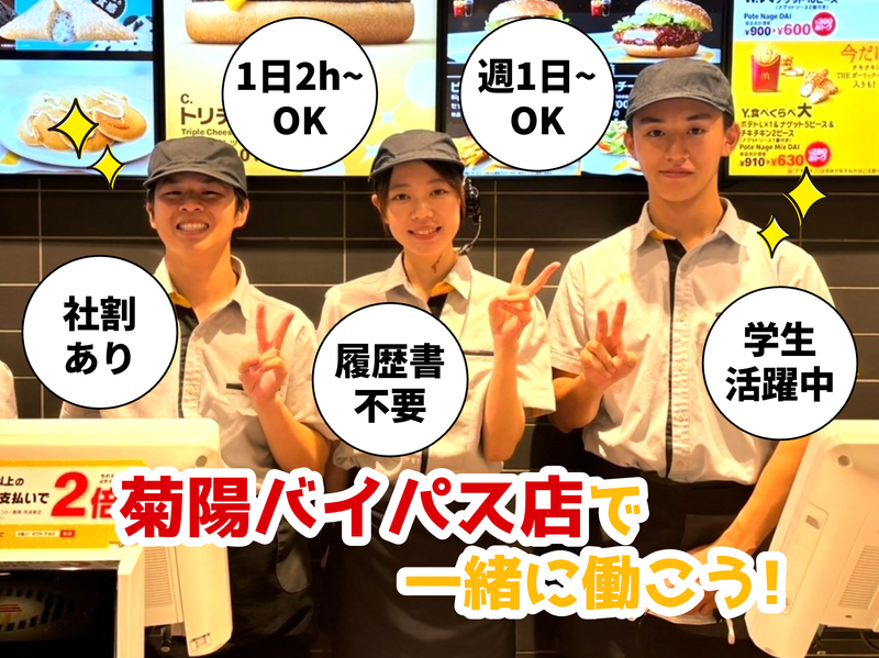 仕事内容 ★時給UP!時給1040円~★ ――――――――――――――――― ✅1日2h~、週1日~シフト入れます! ✅バイトデビューにもオススメ◎ ――――――――――――――――― 《お仕事の詳細》 ・カウンターでの接客、注文伺い ・レジでのお会計 ・商品の準備とご提供 ・店内の清掃 など、マクドナルドでの接客業務全般をお任せします。 笑顔で「いらっしゃいませ」が言えればOK! まずは簡単なことから一つずつ丁寧にお教えします。 研修後は、できる業務を増やしていきましょう! マニュアルも完備しているので、現スタッフは 接客未経験から始められた方がほとんど! ⏩大手チェーンならではの仕組み化!  ̄ ̄ ̄ ̄V ̄ ̄ ̄ ̄ ̄ ̄ ̄ ̄ ̄ ̄ ̄ ̄ ̄ ■空いた時間に作り置きを用意することで ピーク時の慌ただしさは最小限! ■ポジション毎にしっかり整った人員配置! ■シンプルかつ覚えやすい工程! トレーニング(研修)で使うマニュアルは 動画や写真付きで分かりやすいですよ♪