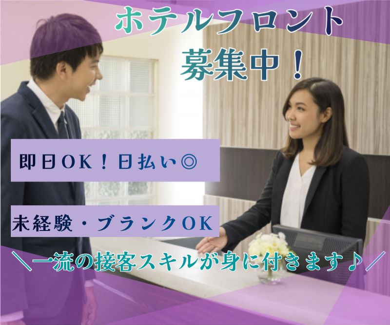 仕事内容 【お仕事point!!】 ・残業ほぼなし!シフト柔軟に対応できます!働きたい時間をお伝えください♪ ・土・日・祝日関係なく働きたい時に働きたい方にオススメ♪平日のみや固定休みも相談OK! 年間、安定した収入を確保できるので、家計に嬉しい♪ ・20代~50代と幅広い年代の方から選ばれてます♪ ・駅スグ!雨の日の通勤もラクラク!複数駅が利用可能な好立地! ・周辺にはコンビニや飲食店などなど色々揃っていて便利ですよ! ・20代~40代まで幅広い年齢の方が勤務中 ・弊社スタッフも多数在籍!「優しいスタッフさんが多い」と評判のホテルです! ・2名募集で同期の仲間もいて安心!! - / コントラストで木と黒を基調としたおしゃれな綺麗なホテル! 1日2~3名体制でのフロント勤務となります。 \ 【仕事内容】 ・チェックイン、チェックアウト ・お荷物のお預かり、返却 ・電話対応 ・その他、ご要望への対応 ※フォロー体制バツグン! 業務をしながら丁寧に教えて下さります! (HR-006)