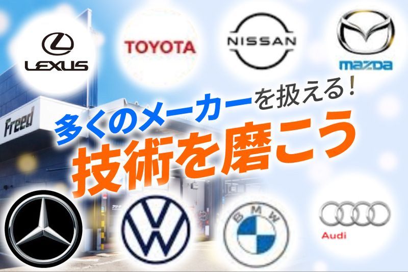 【仕事内容】 \自社指定工場で成約車の点検・整備を担当するメカニック募集!/ 経験が浅い方もぜひ!基本整備から始め、多様な車種を扱いながら着実に技術を磨けます。 _/_/_/_/_/_/_/_/_/_/_/_/_/_/_/_/ 「車いじり」をとことん楽しむ仕事、 始めませんか? _/_/_/_/_/_/_/_/_/_/_/_/_/_/_/_/ ✨「車いじりを仕事にする」✨ 当社ではメーカーや車種を問わず、あらゆる車両の整備を行っています。車好きにはたまらない日々異なる車との出会い。整備士として、そして車オタクとして、新しい知識や技術を常にアップデートしませんか? 最新設備を完備した職場で、スキルを磨く絶好の環境です!アライメントテスターや各種最新機器を使用し、憧れの車をいじりながら高度な技術を習得できる。そんな環境で、趣味と仕事の融合を楽しみましょう! 【この仕事のここがポイント】 ■幅広いメーカー・車種に携わる :毎日が新鮮で、飽きがこない! ■最新整備設備完備 :常に技術を高められる環境! ■資格取得支援 :キャリアアップも全面サポート! ■ 長期休暇あり :GW、夏季、年末年始でプライベートも充実! ✨扱う車種(例)✨ ・GT-R、フェアレディZ、スカイライン ・レクサス、アルファード、ヴェルファイア ・そして、その他の輸入車も多数! 【仕事内容】 ■車検対応・整備作業 ■オイル交換・一般整備 ■ナビや各種パーツの取付 ■各店舗への納車 など ======================= 車オタクいらっしゃい!仕事に集中できる環境で、 スキルを磨きませんか? ======================= 20~40代の先輩整備士8名が活躍中。お客様対応が少ないため、整備作業に集中できる環境です。 ========== 経験が浅い方も安心 ========== 基礎から学べるサポート体制が整っており、自動車工場やガソリンスタンドなどでの整備経験があれば大歓迎!キャリアアップを目指す方には、資格取得やポジションアップの機会も豊富にあります。 ========= 働きやすさも充実 ========= 柔軟なシフト制や希望休取得可能。ライフスタイルに合わせた働き方が可能で、仕事もプライベートも大切にできる職場です。 「車いじり」に情熱を持っている方、ぜひご応募お待ちしています!