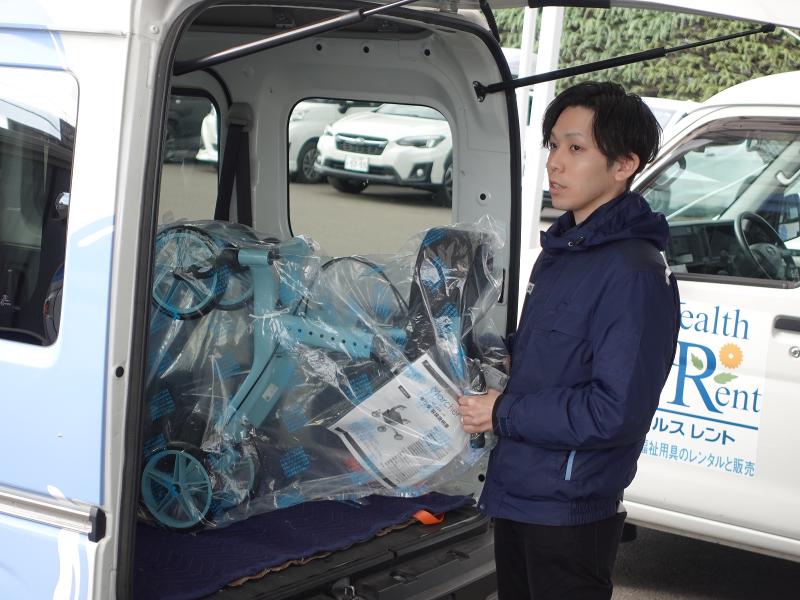正社員の募集です。当社の福祉用具をご契約いただいたご家庭を訪問し、介護ベッドや車椅子などの納品・メンテナンス・回収作業を行う仕事です。
