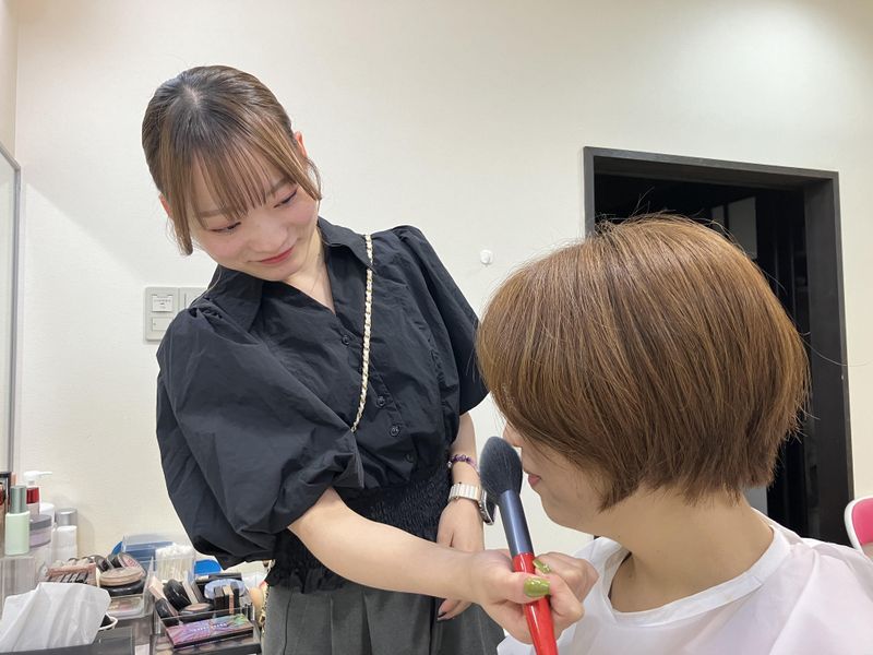仕事内容 <入社前は接客が苦手だったTさん/入社2年目> 美容専門学校卒業後、ヘアメイクの仕事を探していて きものくらちの求人を見つけました。 ヘアメイクの技術はそれなりに自信がありましたが、 学生時代からとにかく接客が苦手・・・。 アルバイトも接客業は避けてきました。 でも入社後に、先輩の接客する姿を見ているうちに 「私も先輩のようにお客様を笑顔にしたい!」 と思えるように。 それから少しずつお客様と会話をするうちに、 接客が好きになりました! 努力して成長できたことで、大きな自信になりました。 成長できる環境で一緒に働きませんか? 【アピールポイント】 ★人生の「特別な日」を彩るお仕事! ★残業ほぼ無し・年間休日104日! ★学歴・経験不問!見学だけでも大歓迎! 【仕事内容】 「きものくらち」店内のフォトスタジオにて、 成人式の前撮り等のお客様のヘアメイクをお願いします。 【具体的には】 ヘアセットを中心に、スタッフと協力しながら 前撮りにいらっしゃったお客様をかわいく・キレイに彩ります! 6月~12月の土日を中心に、振袖の前撮り撮影会を開催しています。 1日約4名のご予約で、撮影の前にヘアメイクや 着付けなどの準備を約1時間で行います。 お客様とはコミュニケーションを通して 素敵な笑顔を引き出したり、ご本人が納得できる、 自慢したくなるお写真を撮るためのご協力をお願いします。 「凄く楽しい撮影だった!」「キレイにしてくれて有難う!」 「メイクさんみたいになりたい」等のお言葉を頂ける瞬間は この仕事の喜びを実感できる瞬間の一つです。 ★そのほか下記業務を担当することもあります。 ・店内接客業務 ・カメラアシスタント業務 (PCでの写真データ修正、店内フォトスタジオでの撮影サポート) 【先輩インタビュー:入社15年目・40代女性】 もともと美容師として働いていましたが、 出産を機に働きやすい時間で、ヘアメイクや着付けなどの 自分のスキルを活かせる場所を探していました。 私は美容院での経験がありましたが、 わからないことはみんなが教えてくれる環境なので、 未経験からでも興味があれば充分できると思います! また拘束時間が短いのも嬉しいポイントです。 残業がほぼなく年間休日も104日あるので、 趣味の時間もしっかりとれています!