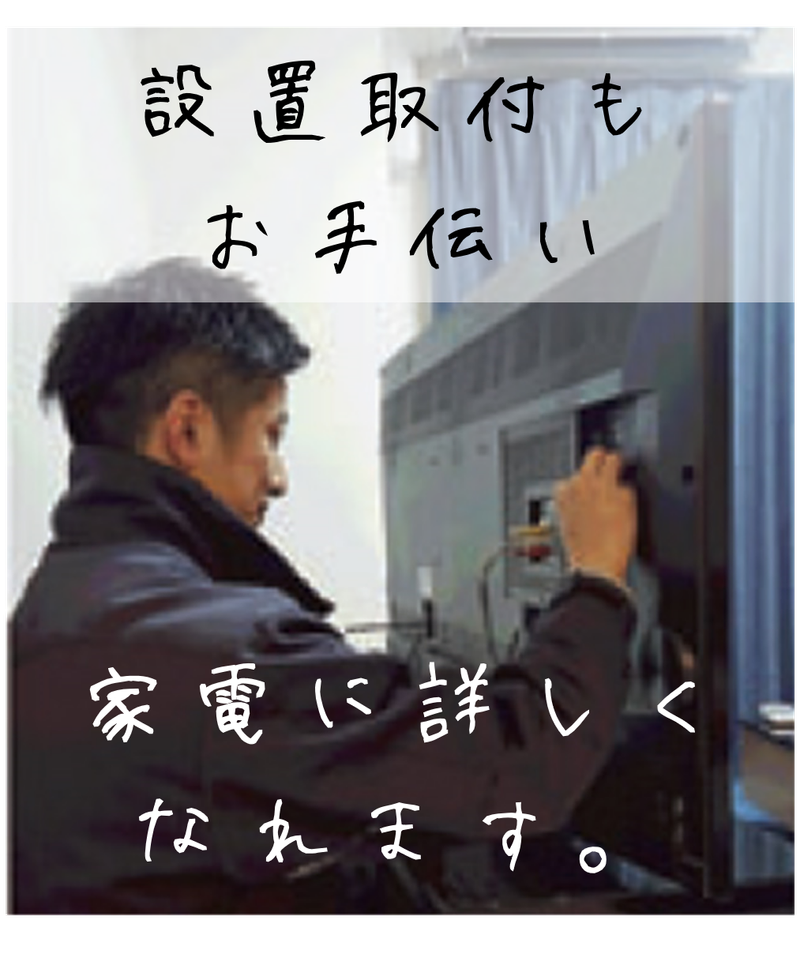 仕事内容 担当していただく配送業務は、 電気店で購入されたTVや洗濯機 等を 各ご家庭に配達し TVの配線や洗濯機の設置のお仕事です。 1日10件~13件程の配送で 1軒あたりのお荷物が1個か2個ほどです。 2名で運ぶ仕事なので、重そうな家電製品も 運び方さえ知れば結構ラクラクです。 元引越業者のスタッフさんは 「何個もあるような引越より、 1個だけの配達が中心な こっちの方が全然楽です」 と言って頂けますし、 元小口の宅配便業者のスタッフさんは 「配送件数を稼ぐ為に走り回っても 不在ばかりだった日々だったので新しい家電の到着を 待ってくれている方がいるのがうれしいです」 と言って頂けます。 登録だけしておけば、 最短で翌日勤務×日払いできます。 日払いに手数料はかかりません。 即座に報酬を得ることができるので、 急な出費や緊急の支払いに対応しやすいです。 また、自分の都合や生活スタイルに合わせて 柔軟に働くことができる点も魅力的です。 とくにかく稼ぎたい!という方には 業務委託という働き方も選択OKです。 例:週5-6日勤務で平均月給は50万円~60万円稼ぐ事も可能です。 2人で運ぶため案外ラクラクとこなせるお仕事なんです。 また設置取付もお手伝いするので 家電製品に詳しくなれます。 ※運転免許が無い方※ 運転手無しで車に同乗し、 搬入のみを手伝うお仕事になる為 日給1万1000円にはなりますが歓迎です。 土日のみの学生さんに大人気! 今回の募集は、事業拡大の為5~8人の応募になります。