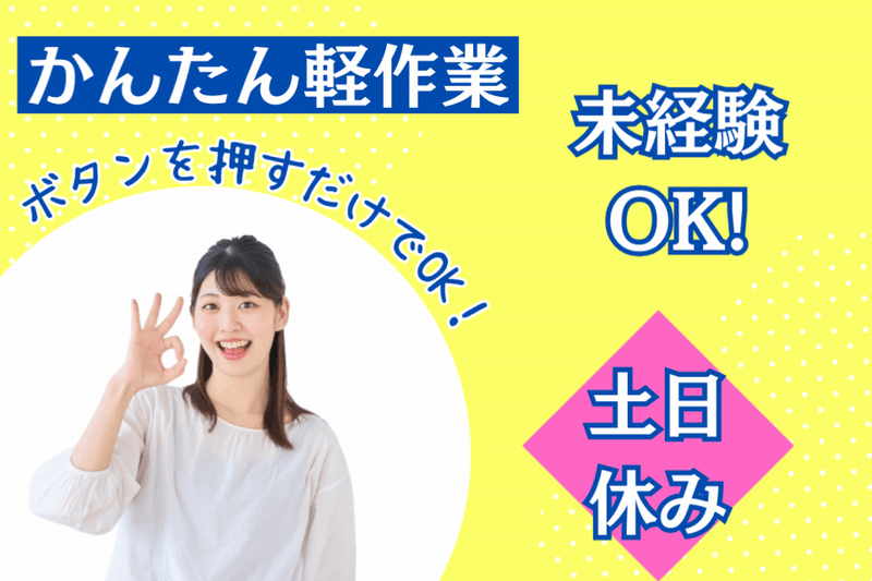 仕事内容 ○20・30・40代活躍中、男女活躍中 ○未経験・初心者活躍中 ○長期休暇あり、土日休み ○正社員登用あり ○駐車場完備、車・バイク通勤可能 【 仕事内容 】 自動車の内部などに使用される 樹脂製の小型部品を作る 工場でのお仕事です! 主にマシン操作をお願いします。 【仕事内容】 ▼印字マシンの操作 印字面を上にして部品を置き、 ボタンを押してマシンを稼働させます。 ▼塗装マシンの操作 部品を塗装用の土台にセットして ボタンを押します。 塗装は全て機械が行います! ▼目視で品質チェック 印字のズレや、塗装漏れがないか 目視で確認します。 部品は1kg以内! 身体に負担をかけずに 作業を行うことができます。 クリーンスーツを着用して 清潔な環境で作業できます♪ 《 出来たばかりの工場で綺麗な職場♪ 》 新しくできた綺麗な工場です! 作業はクリーンルーム内で行うので 空調が完備されていて気温や天気に 左右されず快適な環境です! 寒さや暑さが苦手な方に ピッタリの職場です◎ 《 実は生活の色々な所で活躍 》 日常に欠かせない部品を作っています! 自動車のパーツや、 生活に欠かせない機械の内部パーツなど、 色々な部品を作る工場! 小さな部品ですが、世の中の色んな場面で 役立つ製品を大崎市から世界に送り出しています! 《 ライフワークバランスもばっちり★ 》 土日休み、長期休暇があるので オンとオフのメリハリがきちんとつく! また、工場カレンダーがあるので、 先々のお休みも把握できます◎ 旅行などの計画も立てやすく、おすすめです♪ 《 先輩インタビュー 》 スタッフNさん(男性:29歳) 8ヶ月前入社 こちらの作業所は綺麗な工場で 空調もしっかり管理されているので 体調を崩すことなく快適に 仕事ができています! 作業中はそれぞれモクモクと 集中して仕事をしているので 単独作業が得意な自分には ピッタリの仕事です。 体調が安定したことで プライベートも充実させられました☆