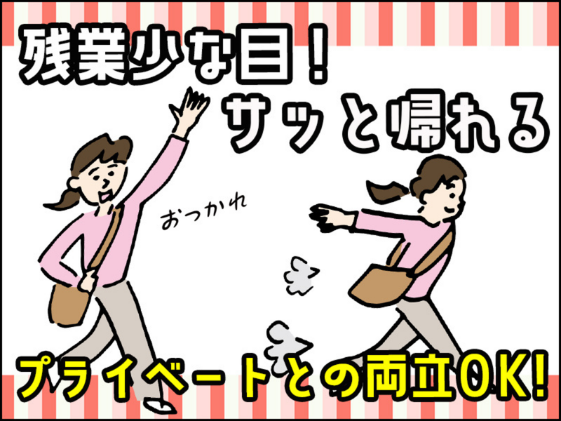 勤務時間詳細 *勤務時間:8:00~16:40(休憩60分) *残業:月0~15h程度 契約更新期間:3ヶ月毎の更新