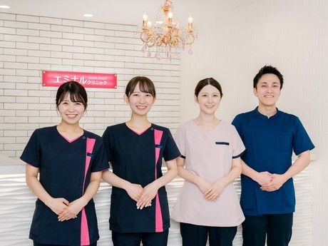 仕事内容 \\ 第二のスタート地点 // 失敗したってやり直せる! あなたのペースで新しいキャリアを。 【入社前に不安解消】 ===================== \[1]風通しの良い環境/ 先輩・上司とも連携が取りやすく 悩みや不安も周りに相談しやすい環境です! また、年齢や社歴に関係なく 様々なことにチェレンジできます! \[2]短期間でキャリアアップ可能/ 看護師としてのスキルアップに加え、 後輩育成やクリニック管理、 エリアマネージャーへのキャリアパスも! 20~30代のスタッフが多数活躍しており、 頑張り次第で早期キャリアアップ可能です! \[3]未経験から高月給36万円~/ 業界未経験歓迎!もちろんブランクOK! 研修制度充実で安心スタート! \[4]想定外の残業なし/ 完全予約制なので残業少なめ! 11時スタートで通勤ラッシュともサヨナラ! \[5]産休明けの復職希望100%達成の実績あり/ お子様のために働く皆さんを精一杯サポート! 安心して育休・産休が取れる環境です、 いつでも相談してくださいね! ===================== 【お仕事詳細】 ・美容施術(脱毛・ハイフ・ダーマペン等) ・痩身事業(ボディハイフ、EMS等) ・診療記録の記入などの事務業務 ・経過観察、患者様へのフォローなどの接客 ・ドクターの補助を含む看護師業務 ・診療終了後、翌日の予約確認や片付け 今後も新しいメニューが展開予定なので、 幅広いスキルを身に付けるチャンスです。 【研修制度充実で安心スタート】 エリアごとに同期が集まり、 座学研修で基礎知識から学んでいきます。 《実技研修のイメージ》 ・約4日間:全身施術 ・約1週間後:先輩社員と患者様へ施術開始 *1~2ヶ月程度かけて基礎知識を習得! *個人差によります 【エミナルは安定経営で勧誘ノルマなし!】 当院は勧誘ノルマや高すぎる目標などはナシ! 目標はクリニック全体で超えていこうという社風。 そして本当に大切なのは中身だと考えています。 目の前のお客様に誠実であり続けること。 その積み重ねが信頼を生み、 今の安定した経営へとつながっています。