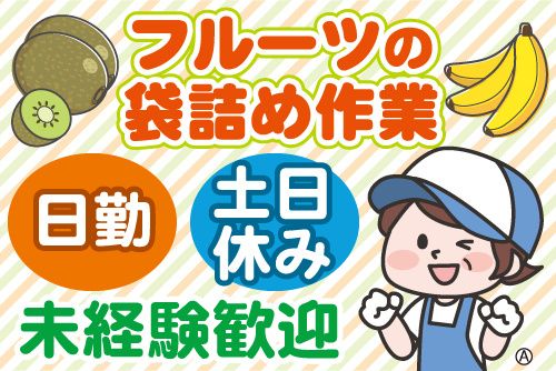 飯能市の倉庫でバナナなどの袋詰め作業 未経験歓迎/果物お持ち帰りOK 期間限定/土日休み/週払いOK