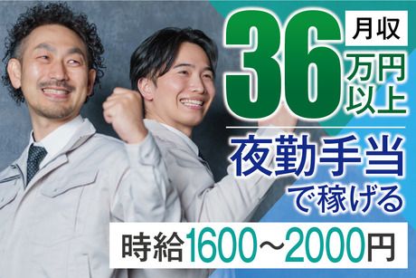 時給1,600円~2,000円 給与 時給 1600円~2000円 交通費:交通費支給 【給与例】 給与例 ▼▼こんなに稼げる!月収のイメージ▼▼ 【残業少なめでもしっかり収入◎】 月収29万8000円以上! (時給×7.5h×22日+深夜当+残業手当8.75h) 【残業多めでガッツリ稼ぎたい方に!】 月収36万5000円以上! (時給×7.5h×23日+深夜手当+残業手当29h)