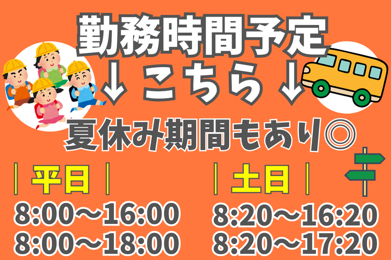 仕事内容 *オープニングスタッフ!スクールバスの案内・誘導スタッフ* 建て替え中の小学校で、4月からスタートする新規メンバーを募集! 生徒さんを送迎するスクールバスの運行をサポートするお仕事です。 バスの誘導と、生徒さんの乗車をサポートを担当します。 日祭日を除いて毎日稼働しているので勤務日程は思いのまま! 週1日からでもエントリーOKです。 ライフスタイルに合わせてお仕事ができます。 ✅選べるシフトで働きやすい♪ ✅週1日~OK!扶養内可能◎ ✅週払いOK!急な出費も安心 ✅交通費は全額支給 [お任せする仕事内容] ・校舎やバス待機所での安全誘導 ・生徒さんのバス乗車案内・誘導 ・バス発着のアナウンス ・発着に伴う運転手さん、添乗員さんへの合図 などなど 小学生の安全な通学を支えます! 「次のバス、発車オーライ!」 「帰りのバスはこちらでお待ちくださいね」 「出発します!お気を付けください!」 などお声掛けをお願いします。 目立たないけど、安心・安全を提供する大事なお仕事です! ほとんどの方が未経験から始めているのでブランクがある方も、初めての方もご安心ください。 事前に研修があり、じっくり学んでからデビューができます! もちろん勤務当日は担当社員や先輩がフォロー! 未経験でもご安心ください。 [働きやすい環境] ✨あなたの都合に合わせてOK!柔軟なシフト制 ✨残業なしでプライベートも充実 ✨長期勤務でビッグボーナスのチャンス! [こんな方も大歓迎] ・毎日はきついけど、週2~3日くらい働きたい主婦(夫)の方 ・定年退職したけど、まだまだ働きたい中高年・シニア世代の方 ・転職/就職活動のワンクッションに次が見つかるまで ・アルバイト、やったことないけど何か始めたい 日払いも可能!! 「もうちょっとお小遣いが足りない」なんていう時も、 事前申請しておけば、その日に現金が受け取れちゃう! そんなに急いでない方にも、お給料は週払い! 毎週水曜日が給料日!! 交通費全額支給、週払い、日給保証などなど 皆さんの働く意欲をサポートします!! ✨さらに長期間勤務いただいた方には 感謝の気持ちを込めて、 「ビッグボーナス5万円」支給!! ご不明点がありましたら、面接の際になんでも訊いてください! 少しでもご興味があれば、お気軽にお問い合わせください。 面接だけでもOKです! [注意] 警備業のため、事前に必ず3回の初任研修を受講していただきます。 詳しくはご応募の際にお問い合わせください。 事業内容 請負業・警備業