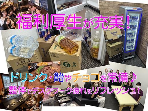 職場環境 女性スタッフ活躍中! 30代…10名、40代…7名、50代…4名 うち、3年未満のスタッフが14名、 3年以上のスタッフが7名在籍しています! コーヒーや紅茶、のどあめやチョコも常備! さらに、無料の出張整体で疲れた身体を リフレッシュできます✨