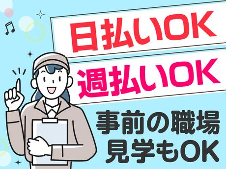 仕事内容 \\ オープニング新着求人 // 採用率高めの今が応募のチャンス◎ 高時給でシッカリ稼げます! 大手企業で安定性バツグン! 未経験から活躍できる 製造スタッフの募集です。 【例えばこんな作業をお任せ!】 □部品を機械にセットする □ボタンを押すと機械が加工してくれる □完成品を取り出し、形やサイズをチェック □必要に応じて他の部品と組み立てる ●むずかしい作業なし♪ 単純作業のくり返しなので 工場内作業や軽作業が 初めての方でも大丈夫! ●丁寧な研修あり♪ 未経験の方でも、最初は先輩社員が 横について一から丁寧に教えてくれるので安心です。 困った時はすぐ質問できるので 安心してお仕事スタートできますよ! ■土日休み&大型連休あり 年末年始やお盆、GWはしっかり お休みが取れるのでプライベートも 大事にしながら働けます♪ 一週間ごとの交代制だから 土日はしっかりお休みして、 オンオフメリハリつけて働けるのもポイント! 製造未経験という方も ムリなく続けることができますよ! ●20~40代男性スタッフ活躍中! ●初月から高収入!月収31万円以上可! ●給与日払い・週払いOK! ■ネストライブが働きやすさをサポート♪ ★交通費支給 ―>遠距離からの通勤も安心◎ ★日払いOK・週払いOK ―>「今月は出費が多くてピンチ!」なんて時も安心◎ ★事前の職場見学もOK ―>気になることをスッキリ解決してから就業できます! ■【ポイント還元】でモチベーションもアップ! \ 働く時間が、あなたのご褒美に! / 皆さんの頑張りをカタチにしてお返しできればという想いから 勤務時間に応じてポイントがもらえる 福利厚生サービス「giftree Benefit」を導入! 通常勤務はもちろん、残業や休日出勤も含めて 1時間勤務あたり5ポイントを進呈します。 貯まったポイントはコンビニやカフェ、飲食店、 ECサイトなど幅広いサービスでご利用が可能です! お好きなタイミングで頑張る自分にご褒美を♪(*'ω'*)ノ ※利用規定あり。詳細はスタート時に説明いたします
