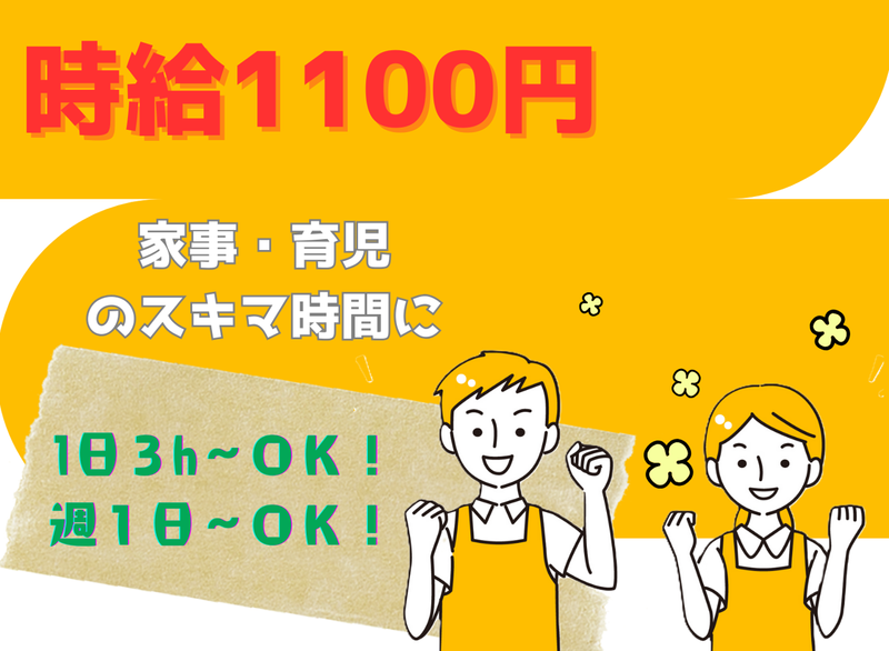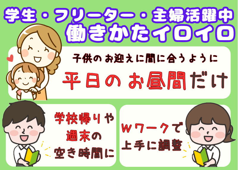 子育て・家事中心シフトを用意♪何曜日でも週1~OK!時短OK