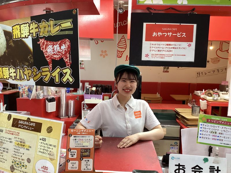 仕事内容 ★クレープ・タピオカのお店★ ★★スタッフ募集★★ 美味しいクレープ、タピオカドリンクなどのスイーツや、 モーニング、ランチなどの販売をお願いします。 ドリンク作りやお店のお掃除もお任せしますね。 カウンターでの注文と会計のあと、 お料理はお客様ご自身で取りに来ていただきます。 空いた食器も、返却口に持ってきていただくセルフサービスです。 そのため、客席への配膳やテーブルの片付け業務はありません。 お仕事に慣れてきたら、簡単な調理もお願いします。 クレープをうまく焼けるよう練習するのも楽しいポイントのひとつ。 きれいに焼けるようになった時の達成感は格別ですよ♪ 1人でお店に立つときなど、 自分のペースで気軽に働くことができますよ! *...*...*...*...*...*...*...*...*...*...*...*...*...* 【 おしゃれもOK 】 髪色自由◎ネイルもOK! お客さんから「そのネイルかわいいね!」と 褒めていただいたこともあります♪ 【 定着率のいい職場です◎ 】 高校1年生~大学卒業の7年間働いてくれた子も! 常連さんも優しく、温かい雰囲気の方ばかりですし、 スタッフ同士も本当に仲が良く和気あいあいと働いています♪ *...*...*...*...*...*...*...*...*...*...*...*...*...* 【 お店について 】 ショッピングセンター内なので、 帰りに買い物もできて便利です。 モーニングは常連さんが多く来店され、にぎやかな雰囲気です。 午後や週末は、クレープやアイスをお求めのお客様が多く、 お子さん連れの方や学生さんがいらっしゃいます。 中には「美味しかった!」「ありがとう!」と 嬉しい声をかけてくださることもあり、嬉しくなります♪ 仲間たちと、楽しく働いてみませんか? 【 オーナーについて 】 大学生、高校生、中学生のお子さんを持つオーナーは、 「子育てしながら」「学業と両立しながら」働くことに とても理解があり、話しやすい方ですよ! 【 事業内容 】 クレープ・アイス販売
