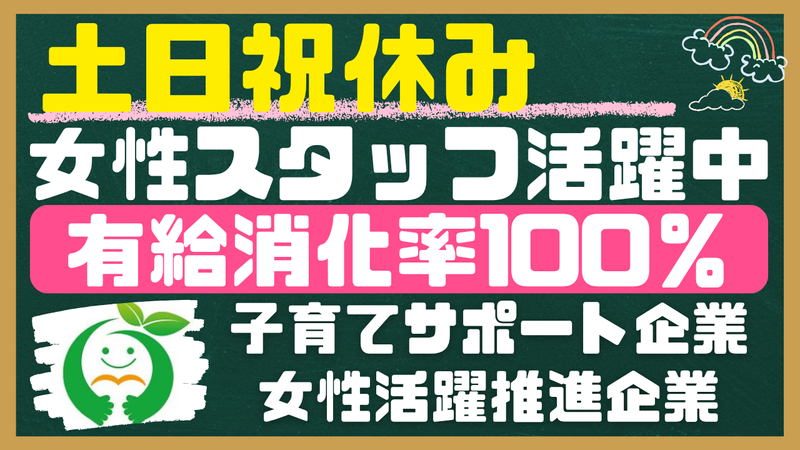 【土日祝休み/残業少なめ】笑顔溢れる職場で長く働きませんか?