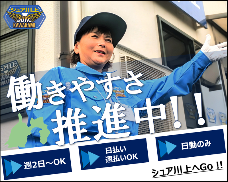 仕事内容 \ 週2日~OK!効率よくお小遣い稼ぎ / 年齢・性別問わず活躍中!未経験からでも 《交通誘導警備員》にチャレンジできる! 【経験不問】丁寧な研修でスキルを習得! 【即収入GET】日払い・週払いも対応可能! 【充実の待遇】寮完備&貸バイクあり! 【お試しOK】「まずは短期」も応相談! -------------------- 【仕事内容】 交通誘導のお仕事をお任せします! 〇歩行者・車両の安全確保 〇誘導棒を使った案内 など 警備の仕事が初めてでも大丈夫! 入社後は、丁寧な研修で仕事の流れを イチから学べるため、未経験でも安心! [勤務地]浜松市内 その他、磐田市、袋井市などの現場もあり *直行直帰可能! <一日のスケジュール例> 08:00 現場集合・交通誘導スタート | 12:00 昼休憩 | 13:00 業務再開 | 17:00 業務終了(直帰OK!) -------------------- \ 働きやすいポイント盛りだくさん / 《 1|夏場は空調服の支給あり! 》 大変な仕事もある分、働きやすくなる ような待遇をしっかり整えています! 《 2|日払い・週払いにも対応! 》 「急にまとまったお金が必要になった」 なんて時にも対応できるため安心です! 《 3|正社員登用あり! 》 「安定して働きたい」といった方は、 希望次第で正社員の道も目指せます!