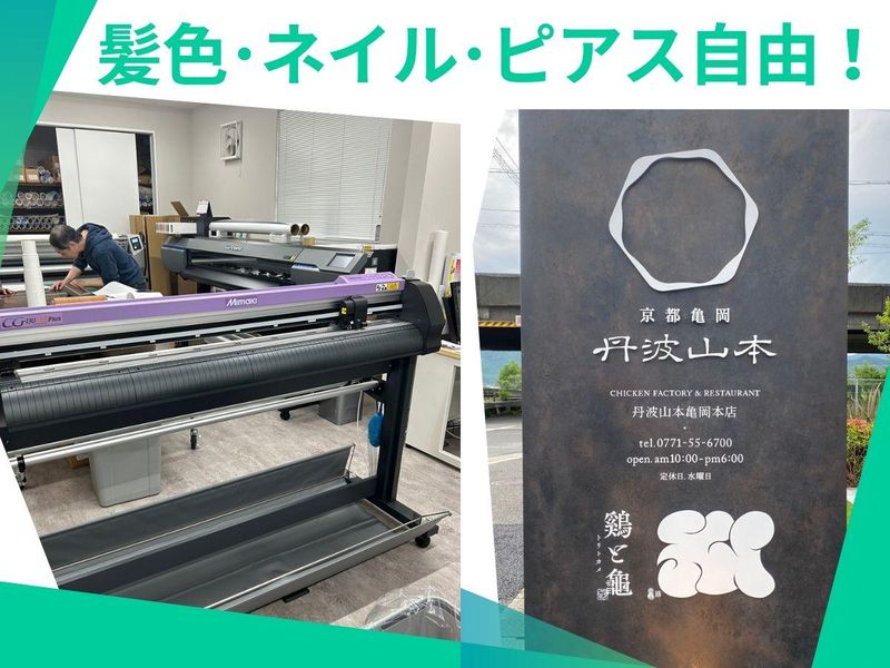 職場環境 看板づくりが分業化する中、 当社はデザインから製作・施工・申請・ メンテナンスまで一貫対応しています。 関西で50年以上続く企業ならではの、 地域のルールや広告の特性に合わせた ノウハウも強みのひとつ。 丁寧な仕事で安定したご依頼を いただいています☘ 喫煙所:なし(敷地内全て禁煙)