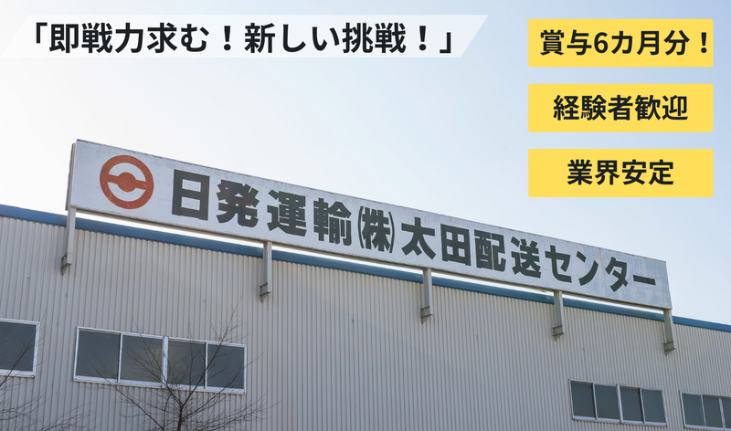 仕事内容 正社員雇用 ━━V━━━━━━━━━━━━━ 2026年の業務拡大に伴い、25t トラックによる自動車部品の拠点配送ドライバーを募集します。 太田市内のみの近距離配送で、 安定した働き方が可能です。 担当業務(仕事内容) ━━V━━━━━━━━━━━━━ 太田市内の各拠点へのルート配送を担当します。 積み込み〜配送〜荷下ろしまで一連の業務をお任せします。 具体的には ・工場間のルート配送(1日4〜5回程度) ・製品の積み込み・荷下ろし ・フォークリフト作業(カウンターフォーク) 【配送エリア】太田市内のみの近距離 入社後の流れ ━━V━━━━━━━━━━━━━ ・入社後は先輩社員が横乗りで丁寧にサポート ・業務の流れや安全手順をしっかり習得 ・独り立ち後もフォロー体制あり 環境 ━━V━━━━━━━━━━━━━ ・完全週休2日制(土日休み) ・大型連休は各9日以上 ・年間休日121日 ・残業少なめでプライベートも確保 ・家族手当・食事補助など手当充実 ・福利厚生が整った安心の職場 働く仲間 ━━V━━━━━━━━━━━━━ 太田配送センターの先輩社員より: 「突発的な案件対応など日々変化はありますが、 チームで協力しながら、 冗談も言い合える明るい職場です。 福利厚生も整っており、 社員として守られている安心感があります。 皆さんと一緒に働ける日を楽しみにしています!」 効率的な業務 ━━V━━━━━━━━━━━━━ ・ルート配送でスケジュールが安定 ・フォークリフト作業で効率よく積み降ろし ・無理のない運行計画で安全第一の体制 キャリアパス ━━V━━━━━━━━━━━━━ 1人ひとりの努力をしっかり評価する会社です。 誰にでもキャリアアップのチャンスがあります。 ・一般正社員 ・班長 ・リーダー ・職長 ・管理職 \注目ポイント/ ━━V━━━━━━━━━━━━━ ・8年連続「賞与6ヶ月分」支給実績 ・社員を大切にする会社で長く働ける ・昇給あり ・安定した大手メーカーの部品配送 ・近距離配送で身体への負担が少ない ━━━━━━━━━━━━━━━━━━━━━ ・求人案件 (求人企業)雇用主 日発運輸株式会社 ・担当エージェント(選考サポート) 【職業紹介事業者】 株式会社シナジー ※職業紹介事業者 24時間 365日(求人応募 受付中) ━━━━━━━━━━━━━━━━━ なお、本求人は職業紹介事業者である株式会社シナジーによる紹介案件です。